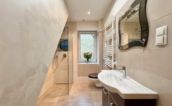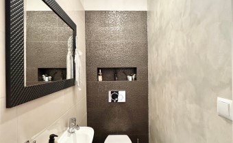 - Poziom -1: 3 ogrzewane pomieszczenia (idealne na pokój do gier, saunę, piwniczkę na wina), kotłownia z pralnią wyposażona w piec gazowy dwuobiegowy z zamkniętą komorą spalania i zasobnikiem wody na 60 litrów firmy Brotje oraz zmiękczacz wody.