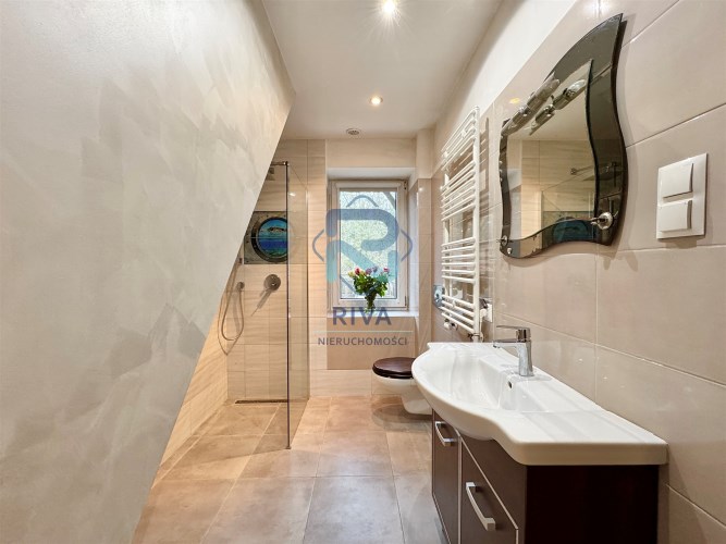 - Remont: Podczas remontu wymieniono wszystkie instalacje (wodno-kanalizacyjną, elektryczną- 3 fazową, gazową), zainstalowano instalację pod inteligentny dom, system alarmowy (5 kamer zewnętrznych, rejestrator) oraz  instalację komputerowo- internetową (w każdym pomieszczeniu znajdują się gniazda internetowe). Okna PCV wyposażone są w kontraktony. Na ścianach płyty kartonowo-gipsowe. Odkurzacz centralny.