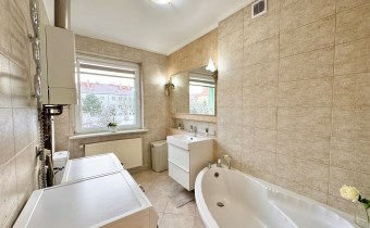 Całość mieszkania urządzona jest gustownie w nowoczesnym stylu. Jest to mieszkanie bardzo zadbane, słoneczne, ciepłe i przytulne. Ostatni remont przeprowadzony był 5 lat temu.Przed budynkiem znajdują się miejsca parkingowe bez strefy płatnego parkowania. Do mieszkania przynależy duża piwnica około 13 m2 oraz połowa części strychu.
