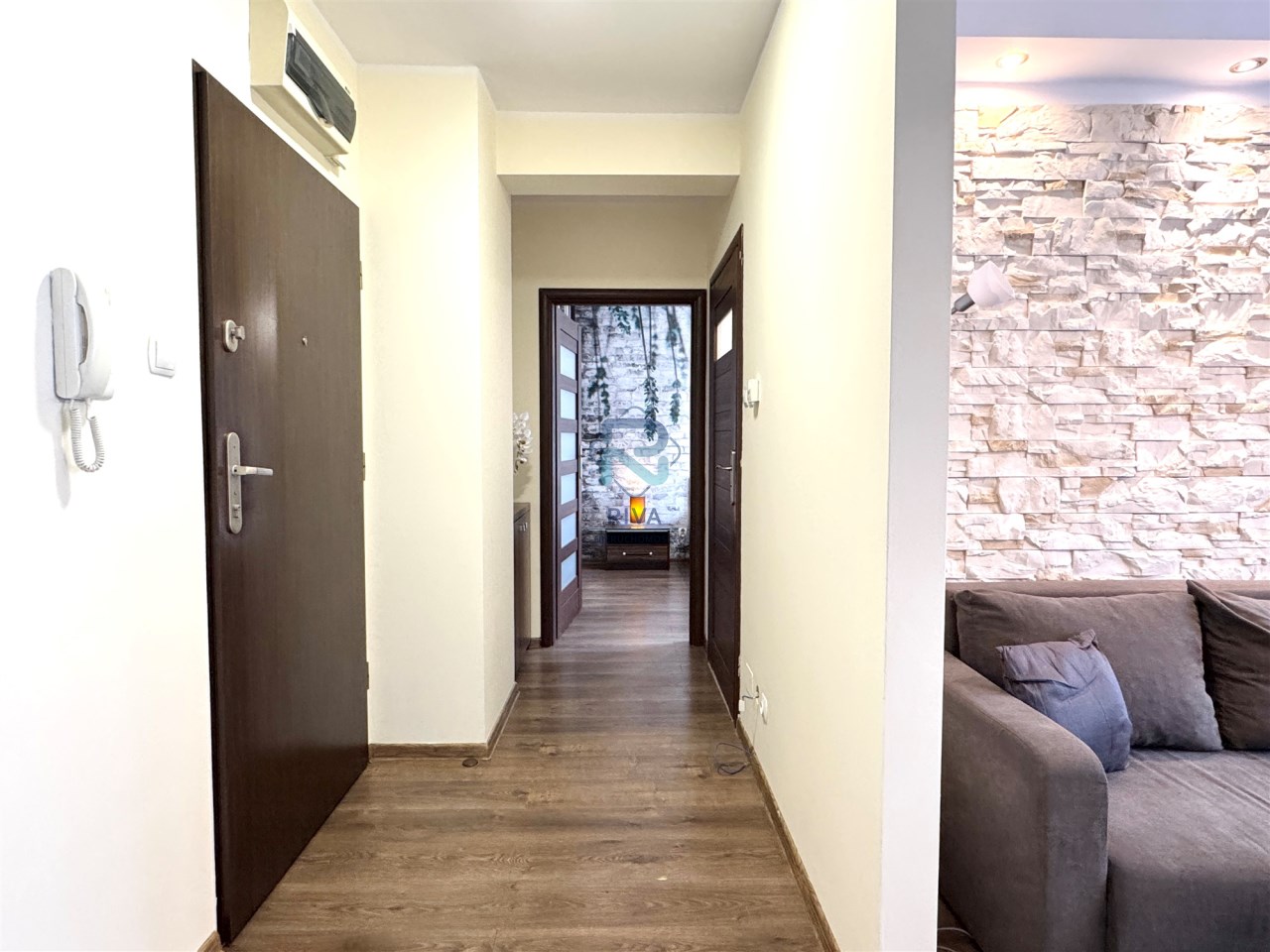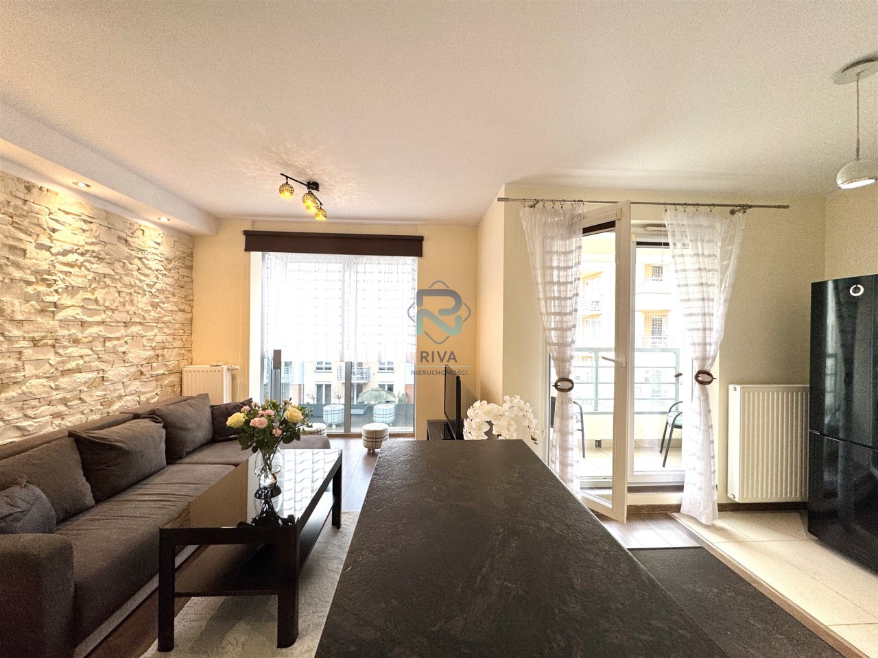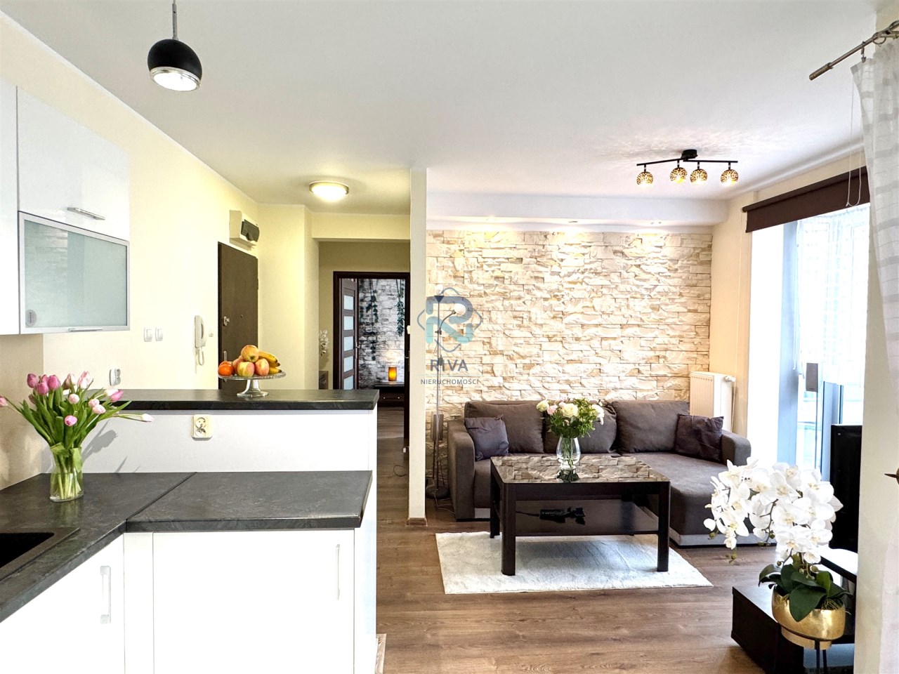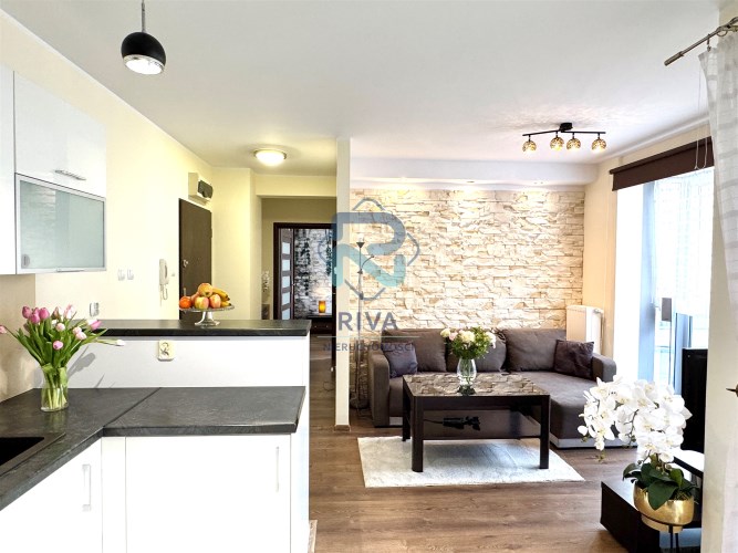 Mieszkanie zostało urządzone w spójnym, nowoczesnym stylu. Jest bardzo ciepłe, przytulne i w pełni wyposażone, co pozwala na natychmiastowe zamieszkanie.