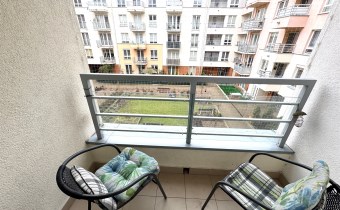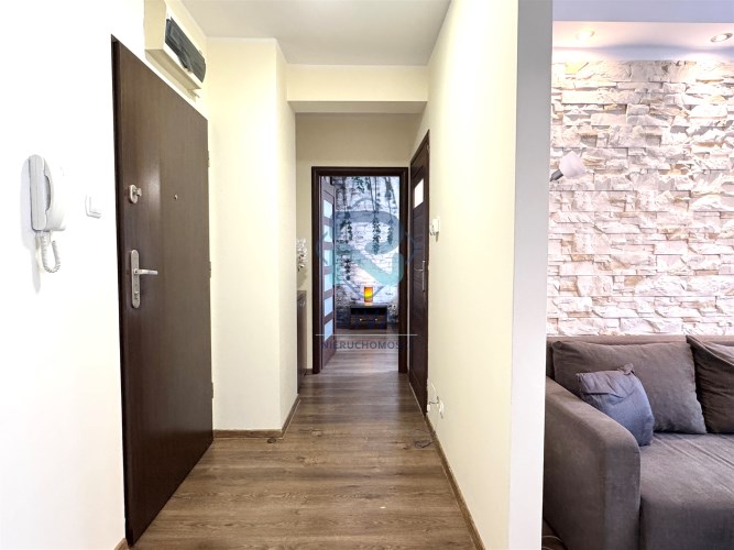 Budynek wyposażony jest w windę, a teren jest monitorowany, co zapewnia komfort i bezpieczeństwo mieszkańcom. Okolica jest spokojna, a samo mieszkanie wyjątkowo ciche.