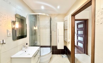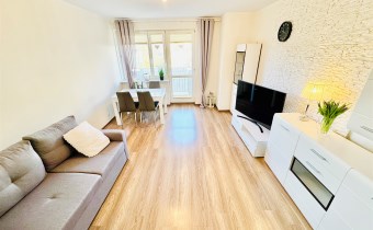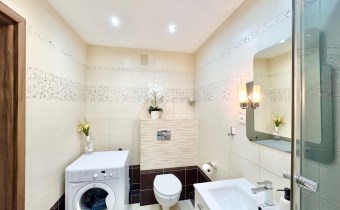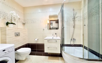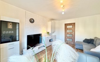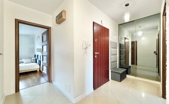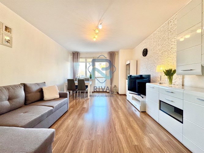 Wnętrze zostało urządzone w nowoczesnym, spójnym stylu. Mieszkanie jest bardzo zadbane, czyste, przestronne i doskonale doświetlone naturalnym światłem.Lokal sprzedawany jest z pełnym umeblowaniem oraz wyposażeniem AGD (pralka, zmywarka, lodówka, piekarnik, mikrofalówka, płyta grzewcza), co umożliwia natychmiastowe wprowadzenie się bez dodatkowych nakładów finansowych.